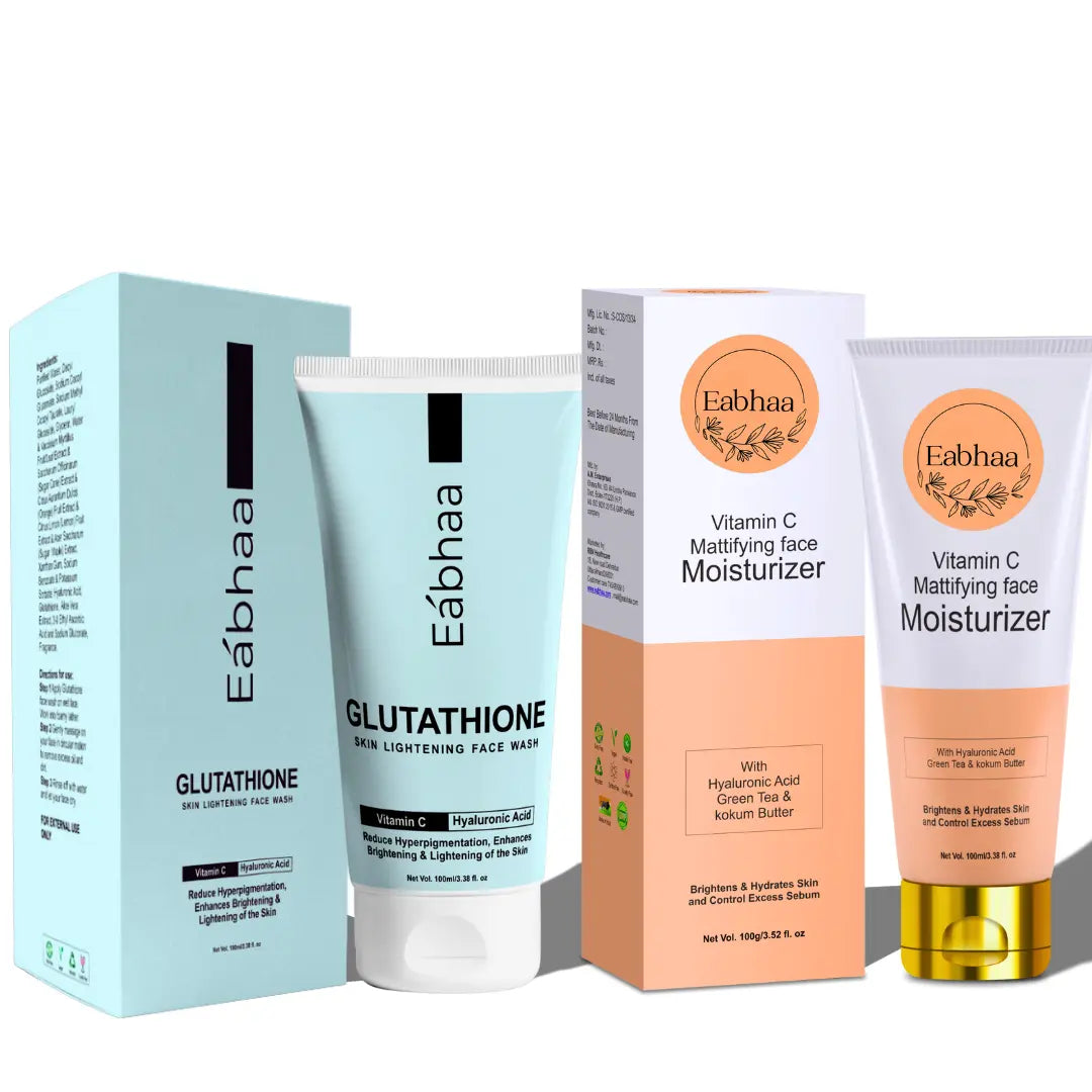 Achieve clean, bright, and refreshed skin with the Eabhaa Glutathione Face Wash & Vitamin C Mattifying Moisturizer Combo — a complete skincare duo for daily use.